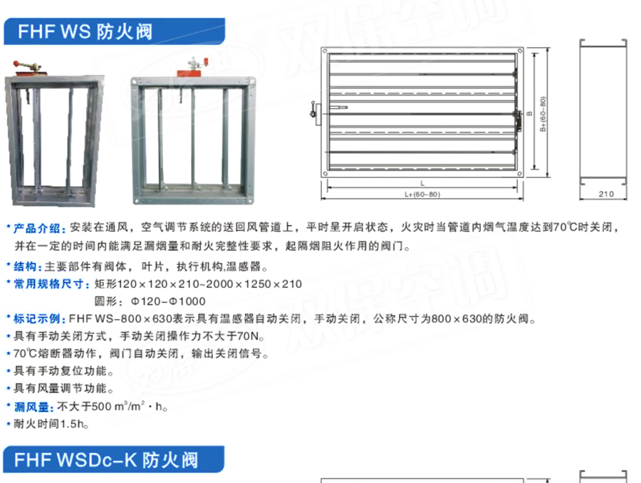 【產品名稱】防火閥 WS-FK-D                   【生產廠家】江蘇雙保空調有限公司