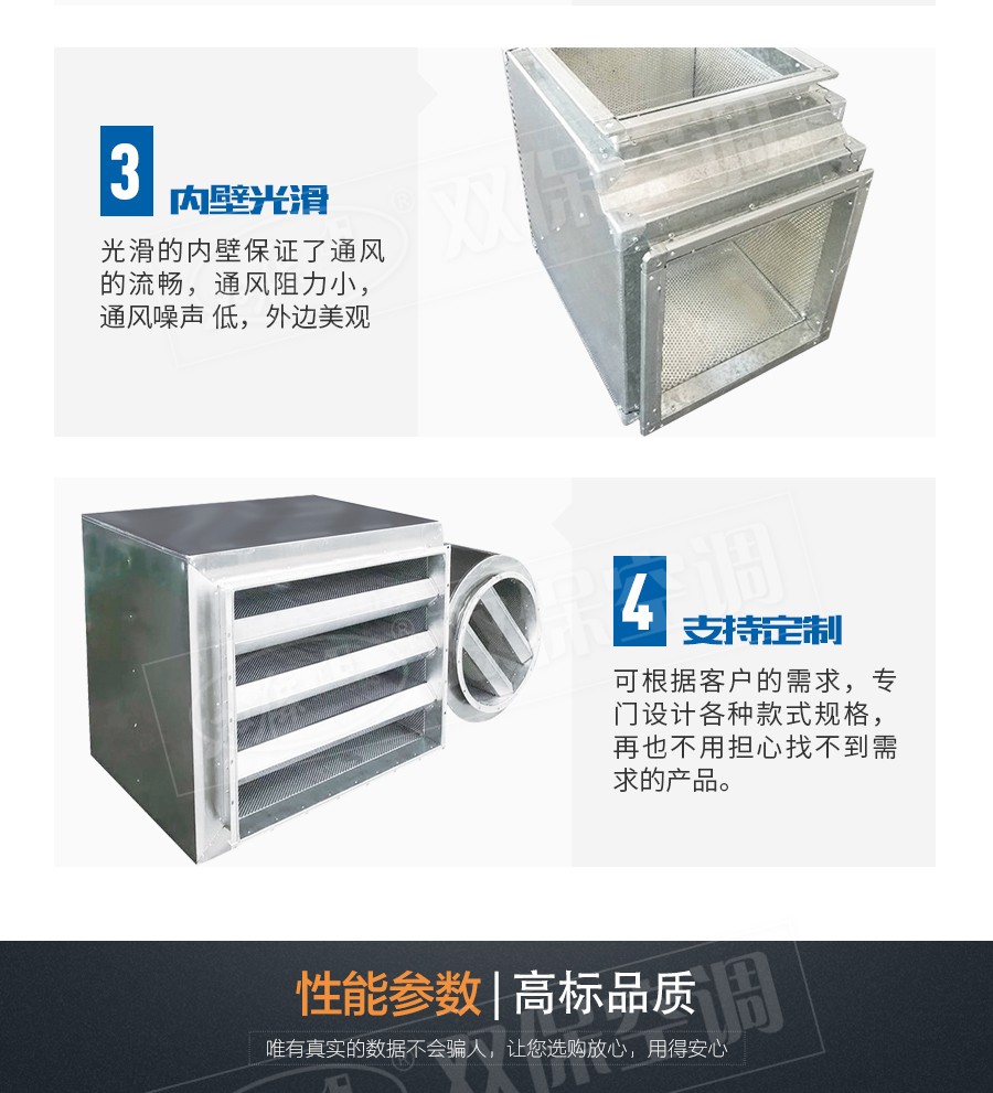 江蘇雙??照{有限公司—消聲器內管道截面突變,內外室之膨脹室作用,對低頻及部分中頻起有效的消聲作用,而阻式吸聲片對中高頻有良好的消聲作用,是一種廣頻消聲器,廣泛應用于空調系統中降低中低壓風機的噪聲,為加強消聲效果,也可多節消聲串聯使用,風速一般在6-8米/秒。