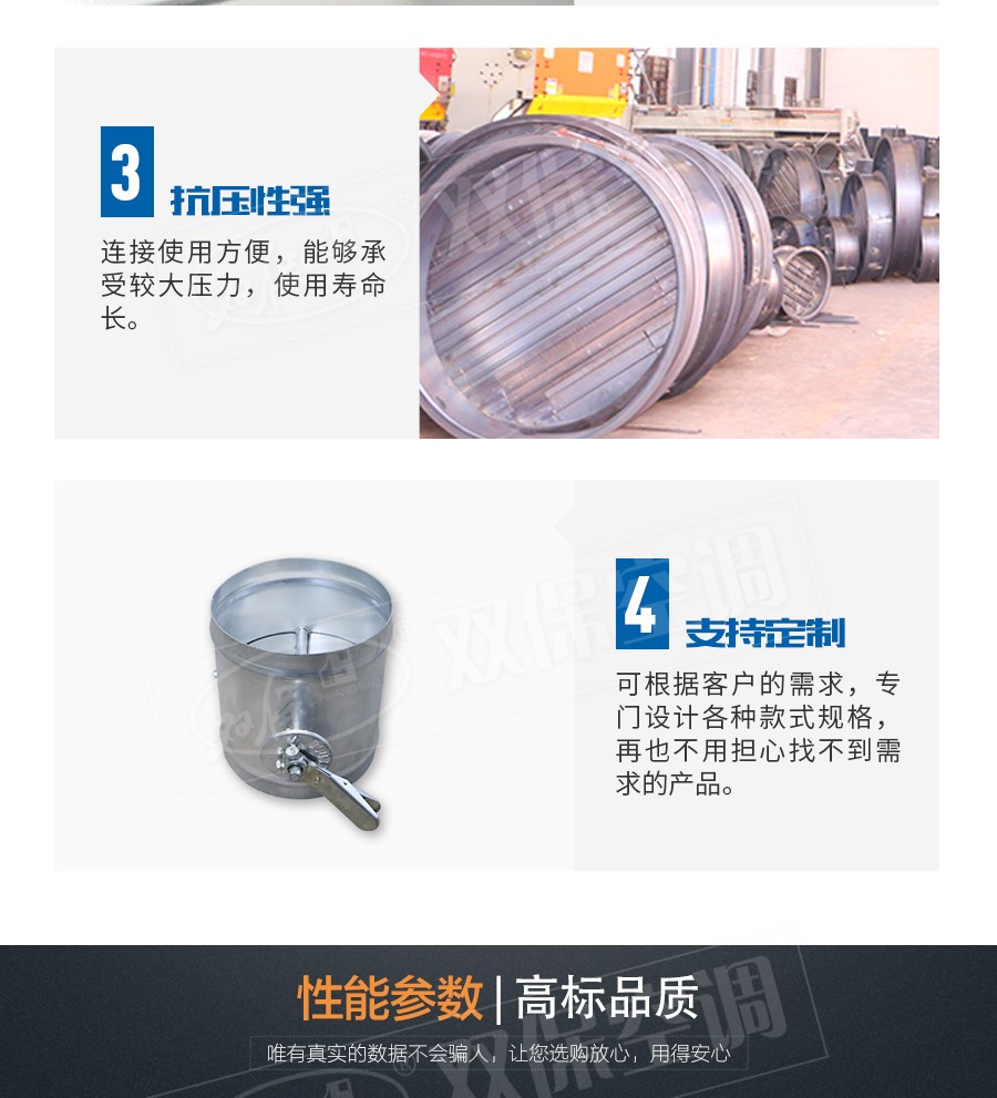【產品名稱】圓形風量調節閥                   【生產廠家】江蘇雙保空調有限公司
